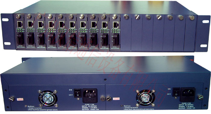 產品介紹 HS-16型光纖收發器機架(2U)是一款經濟型的用于機房的轉換機架。最多可允許插入16個不同型號的卡式光纖收發器,主、備電源集中供電并可自動切換。