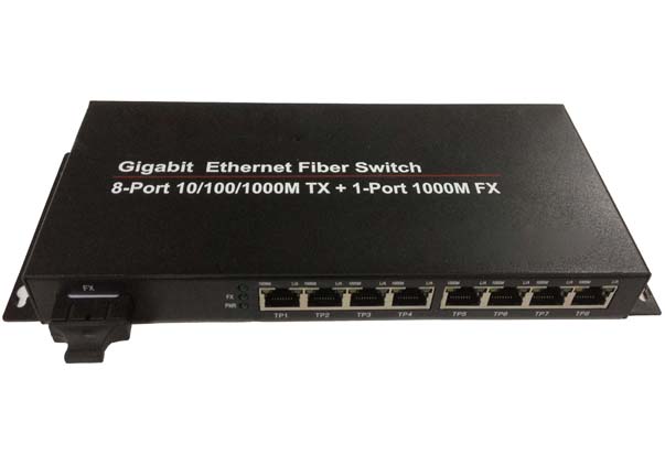 千兆八電口光纖收發器是一種將以太網電信號轉換成光信號或光信號轉換成以太網電信號的光電轉換設備,通過將電信號轉換為光信號在多模或單模光纖上傳輸,突 破了電纜傳輸距離短的限/制,使得以太網在保證高帶寬傳輸的前提下,利用光纖介質實現幾公里甚至幾十公里的遠距離傳輸。使用光纖收發器構造網絡能夠節省網 絡投資。
