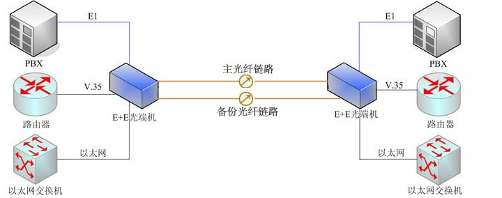 4/8/16E1+以太網 雙光口備份以太網光端機