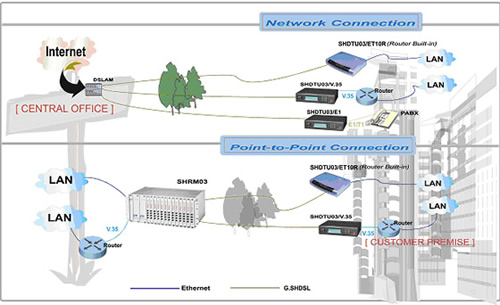方案說明 SHDSL(Symmetric High Speed DSL)路由器提供一個速率為64Kbps-2.304Mbps的SHDSL網絡接口。SHDSL路由器可以很好地滿足從中心辦公場所到客戶場所的高速數據業務,它集成了高端橋接及路由能力。SHDSL路由器允許客戶使用最新的寬帶技術來滿足他們日益增長的數據通信需求。 通過功能強大的SHDSL路由器,你可以獲得極好的管理性和可靠性。