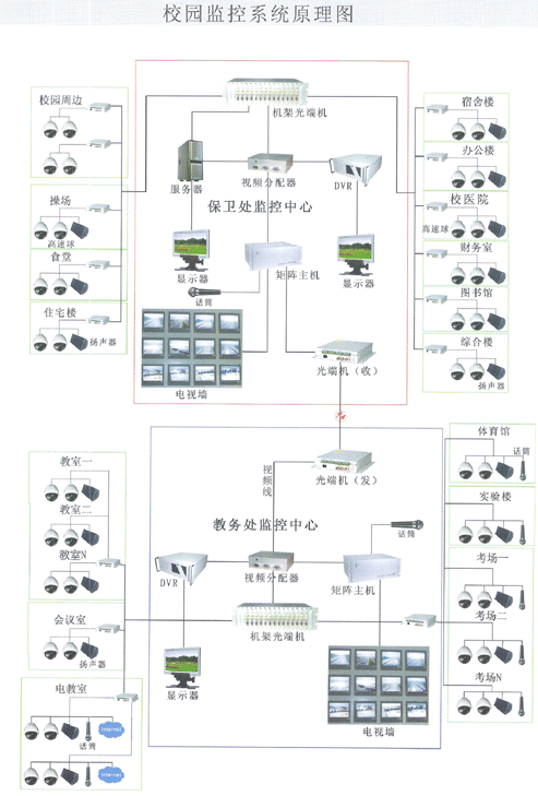 校園網監控系統原理圖-視頻光端機應用